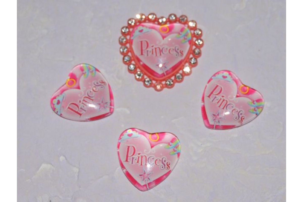 Кабошон стеклянный сердечко 25 мм "Принцесса" - 1 шт, 258-232, Китай, Кабошоны стекло с рисунком