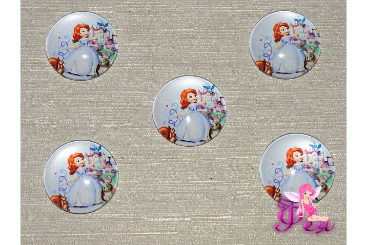 Кабошон стеклянный с рисунком 25 мм "Принцесса София 2" - 1шт, 10559, Китай, Кабошоны стекло с рисунком