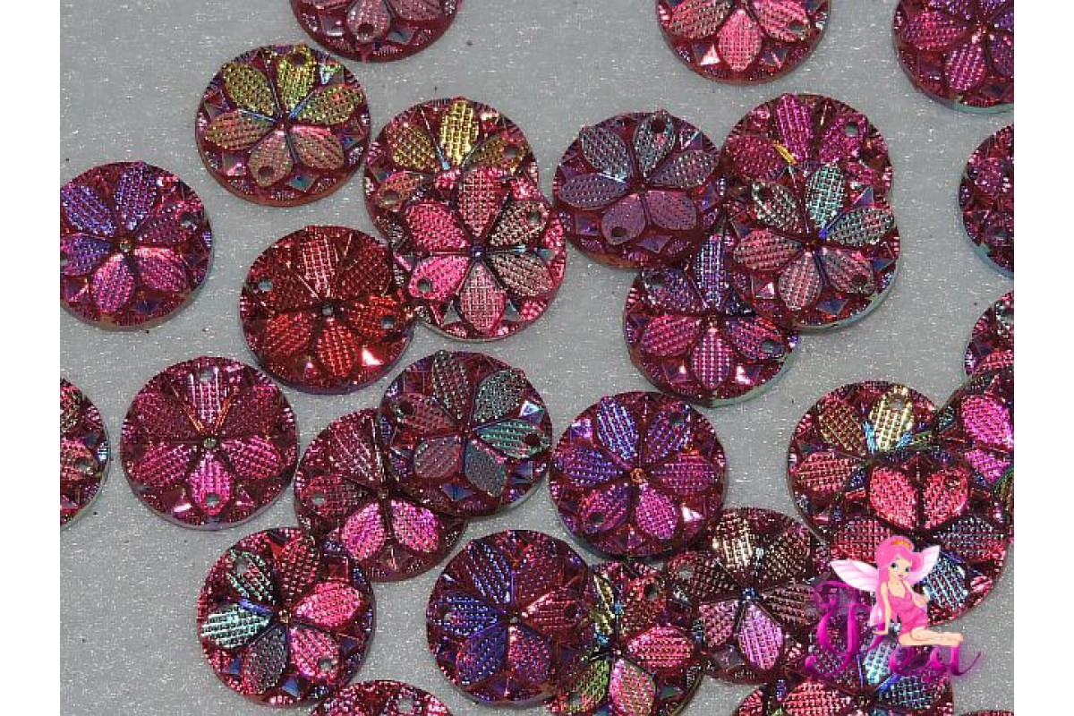 Пришив. кабошоны "Круг-цветок" 15 мм , фуксии радужный - 1 шт