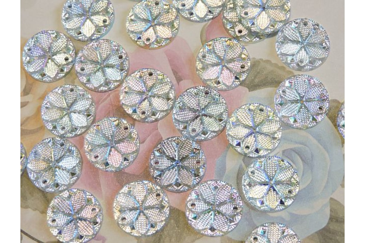 Пришив. кабошоны-стразы "Круг-цветок" 15 мм, серебро радужный - 1 шт