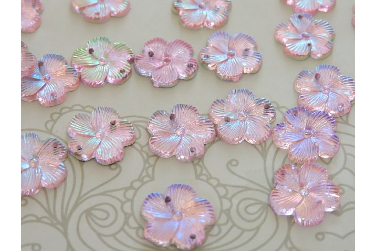 Пришивные стразы "Цветок" 15 мм, цв. розовый радужный - 1 шт