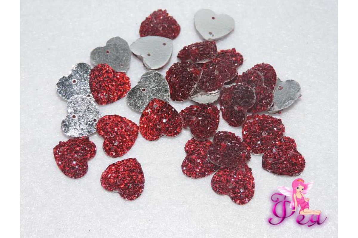 Стразы пришивные (Сердце блестящее) 12 мм, красный, А17, DiDi (Корея), Кабошоны-стразы