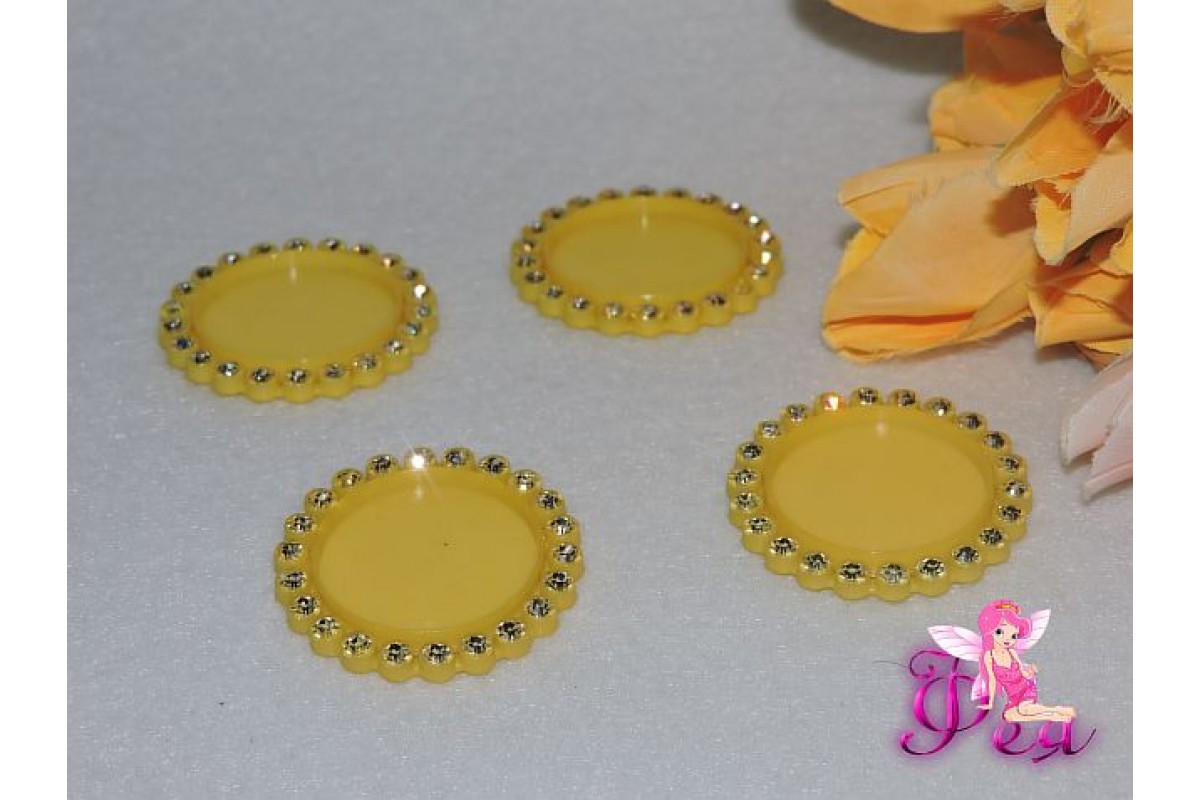 Крышечка-серединка со стразами 25 мм, цв. желтый-1 шт, 255-476, Китай, Основа-рамки, крышечки