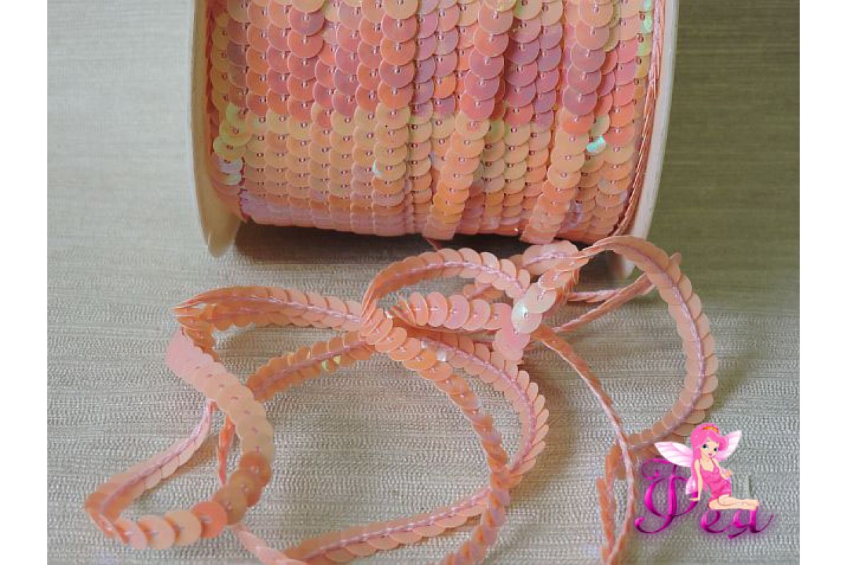 Пайетки на нитке 6 мм, цв. светло-розовый ( 1 м), С 210/40, Китай, Пайетки