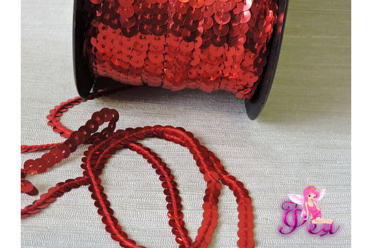 Пайетки на нитке 6мм, цв. красный - 1 м, С 220/240, Китай, Пайетки