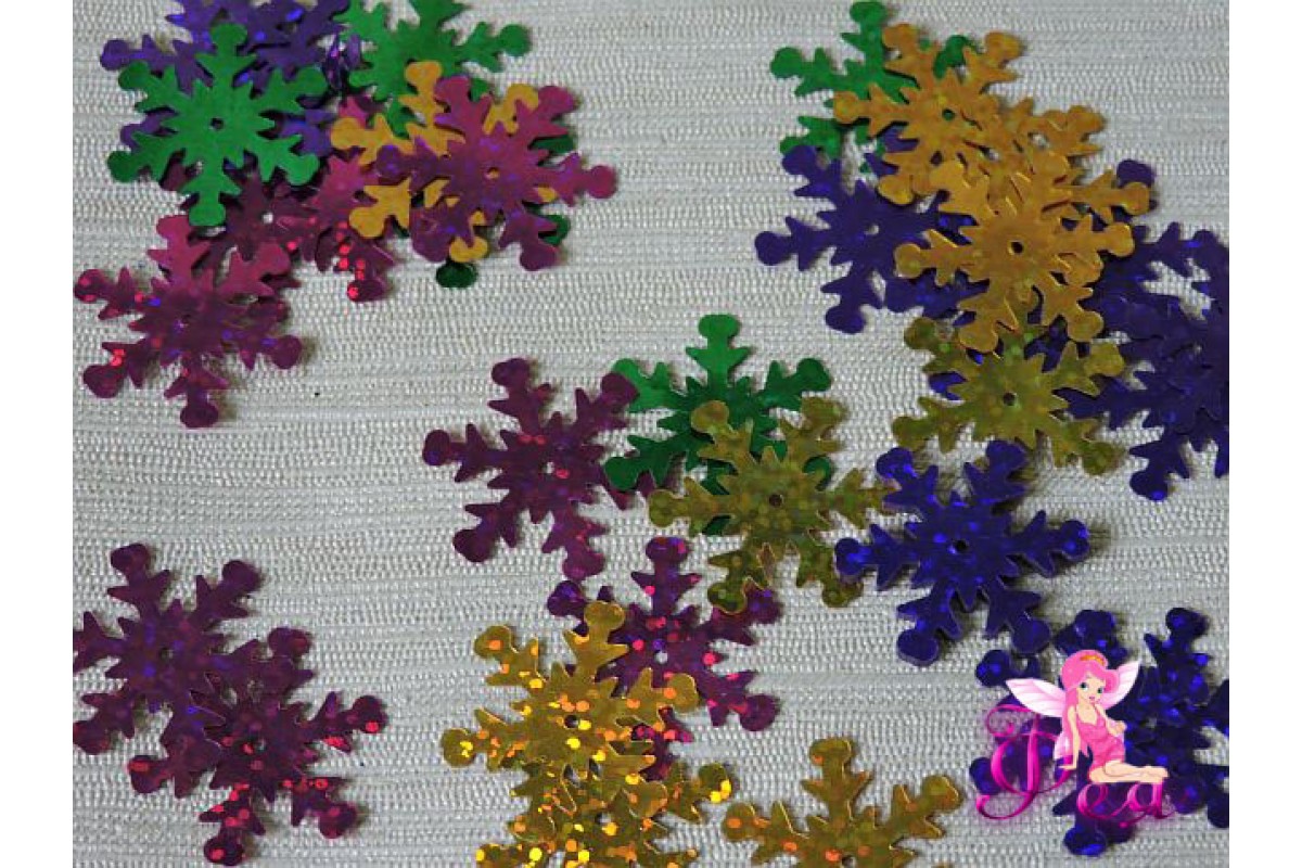 Пайетки "Снежинки" 25 мм, ассорти (уп 30шт)