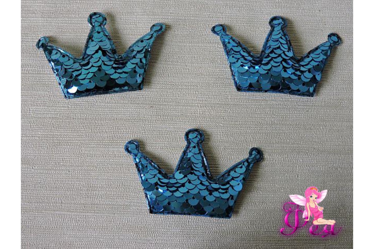 Патч 3D с двухсторон. пайетками "Корона" 6*4 см, голубой (1 шт)