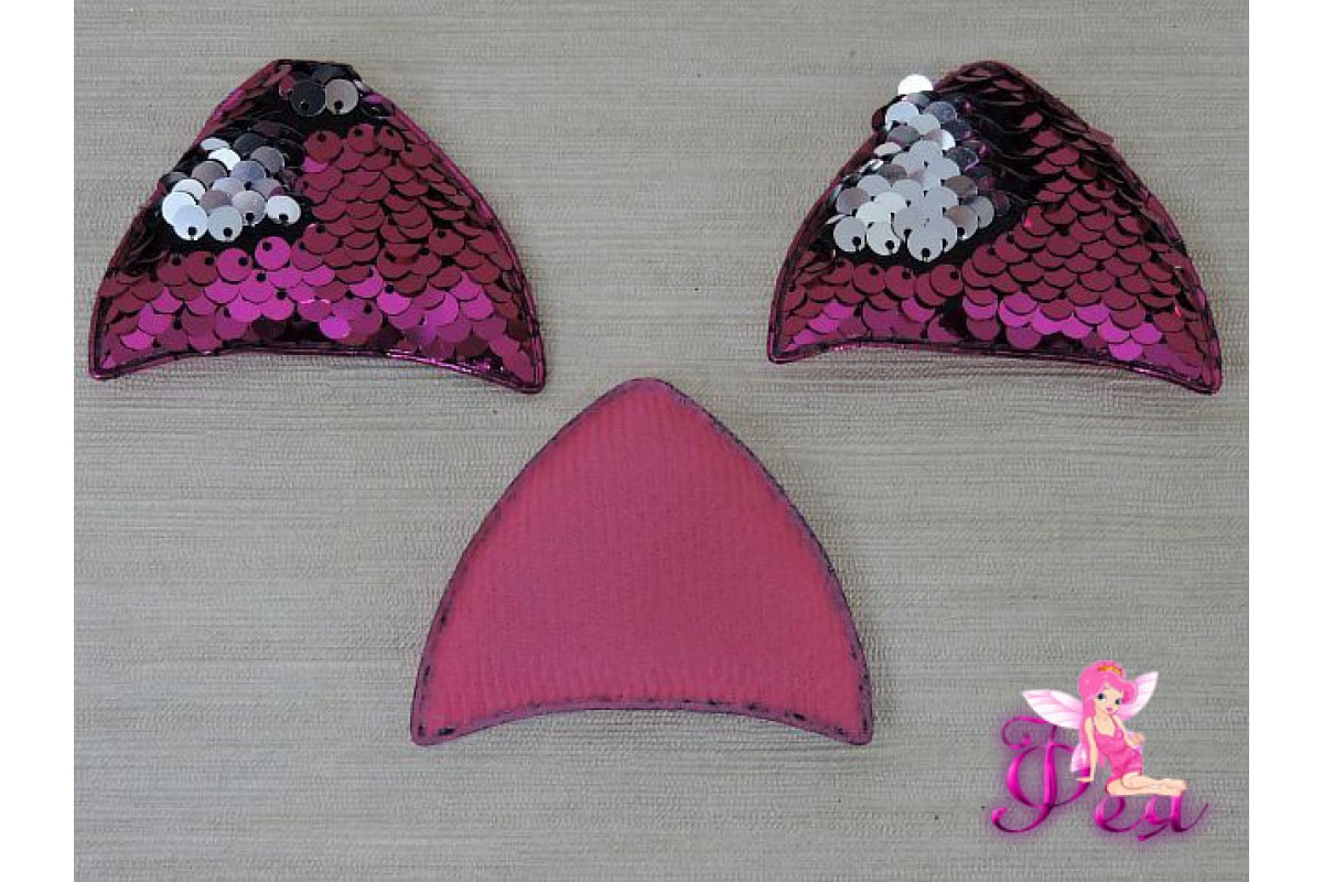 Патч 3D с двухсторон. пайетками "Ушки" 6*4 см , фукси (1 шт)