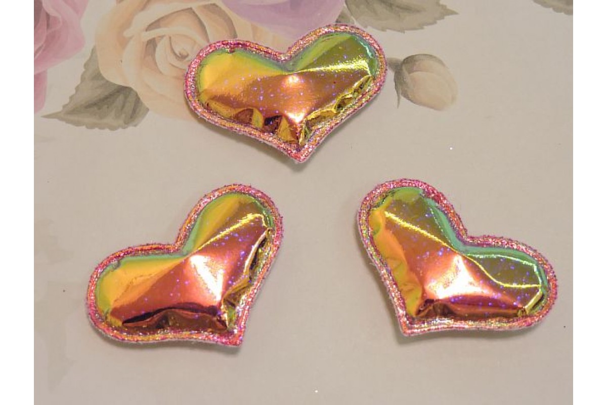 Патч глянец с блестками "Сердечко" 3*3, 9 см, цв. коралловый хамелеон - 1 шт, 136-610, Китай, Патчи