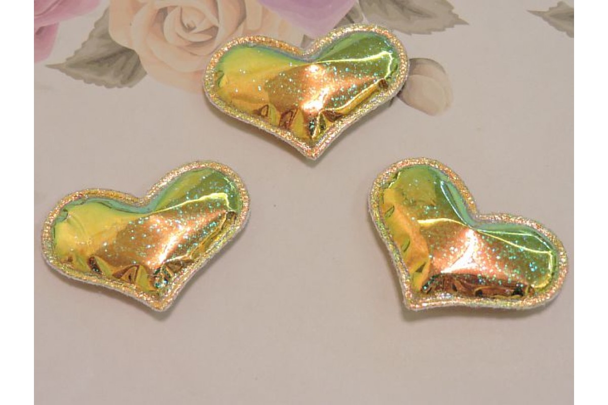 Патч глянец с блестками "Сердечко" 3*3,9 см, цв. золото хамелеон - 1 шт