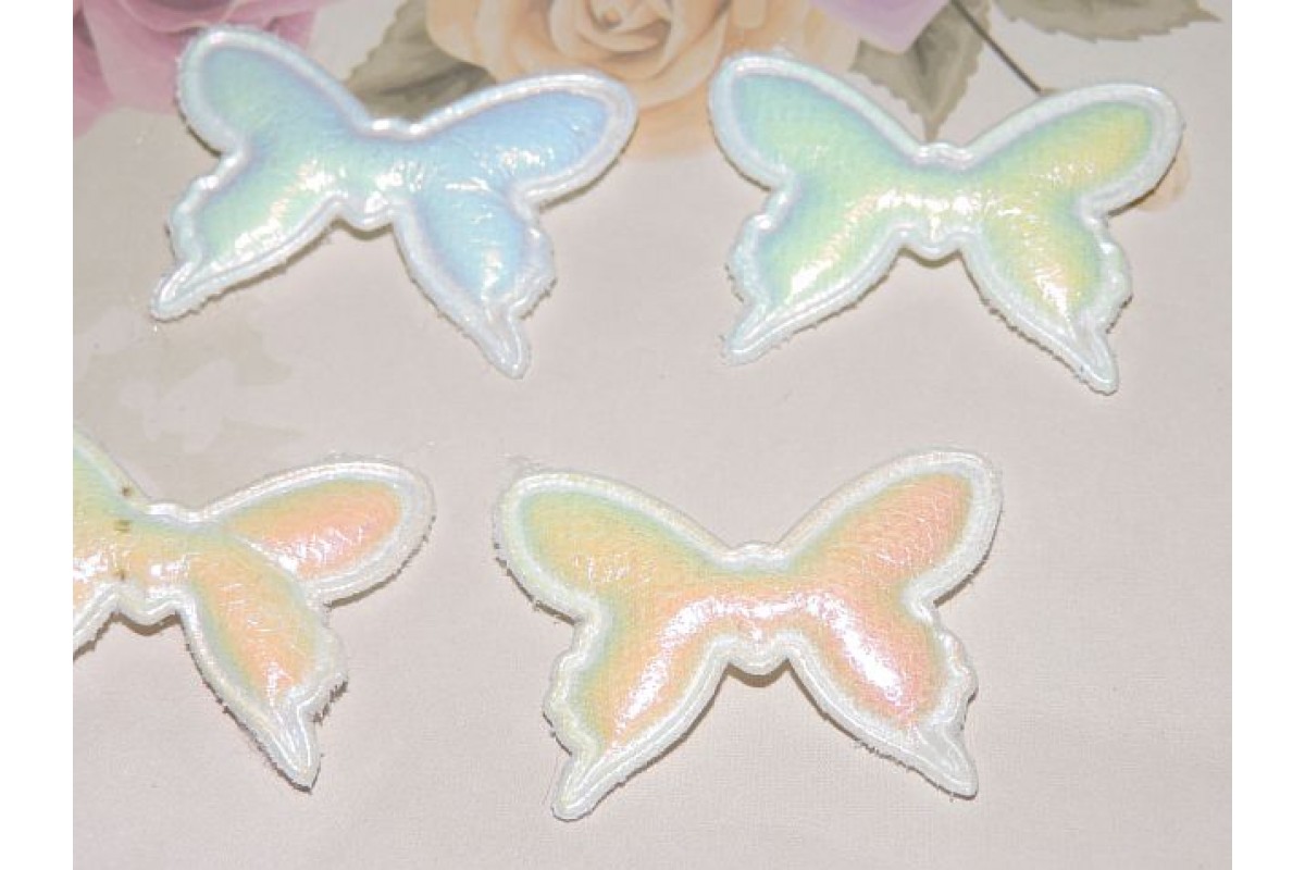 Патч кожзам "Бабочка" 4*3 см, цв. белый хамелеон - 1 шт