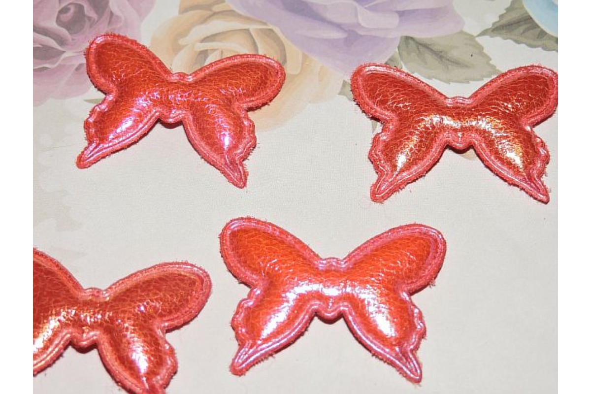 Патч кожзам "Бабочка" 4*3 см, цв. красный - 1 шт, 236142, Китай, Патчи