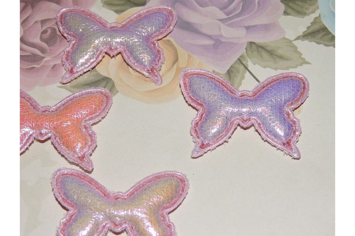Патч кожзам "Бабочка" 4*3 см, цв. розовый - 1шт, 236-146, Китай, Патчи