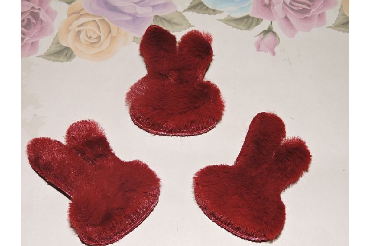 Патч меховой "Зайка" 4,2*6 см, цв. бордовый - 1 шт