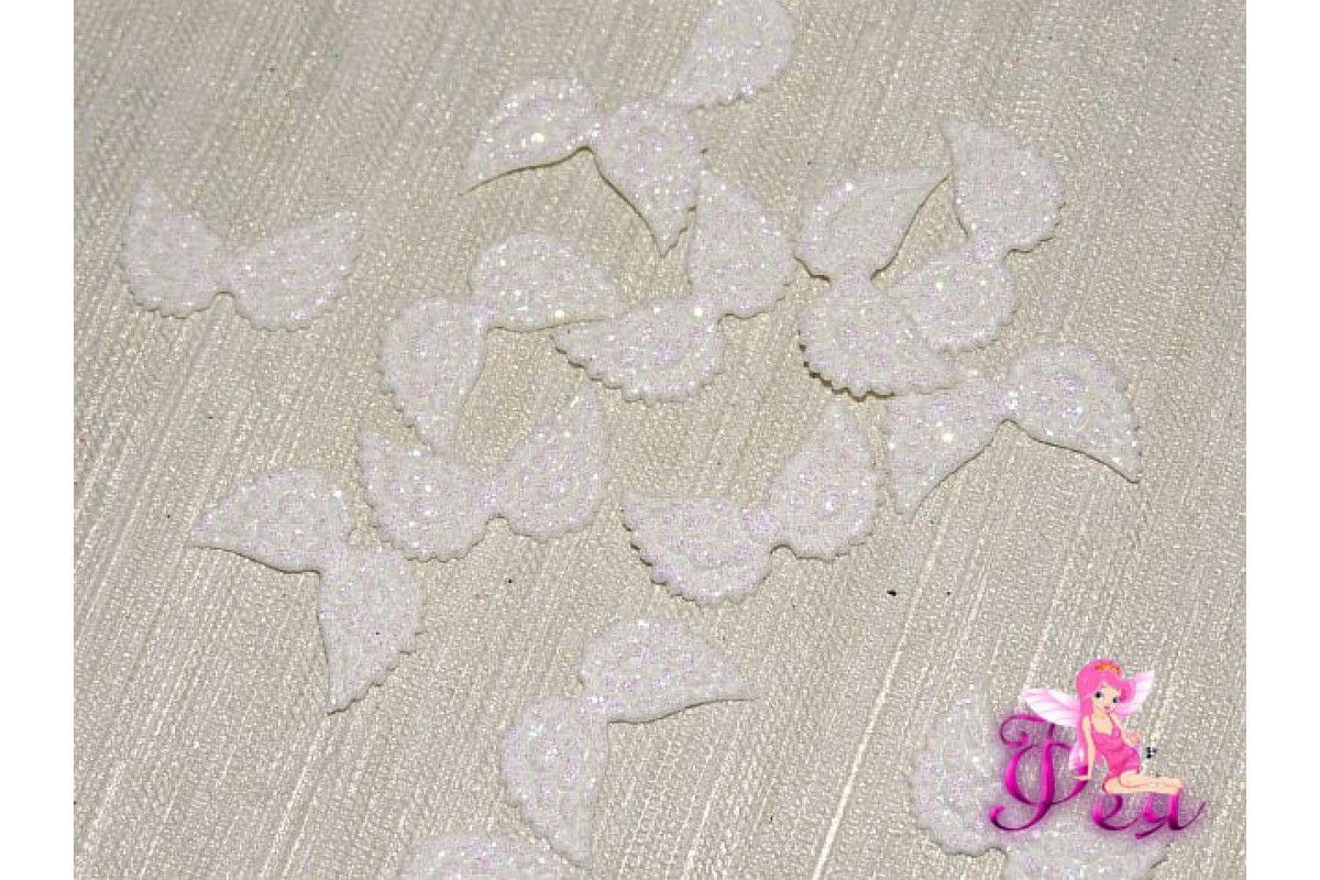 Патч с блестками2*1см "Крылья маленькие", белый (1 шт)