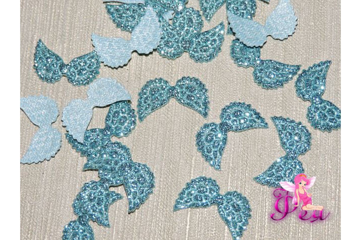 Патч с блестками 2*1 см "Крылья маленькие", голубой (1 шт)