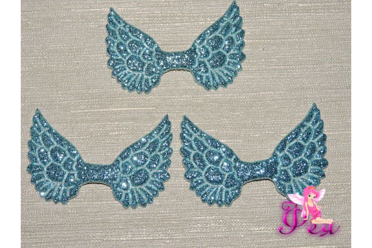 Патч с блестками 4,5 см*3 см "Крылья", голубой - 1шт.