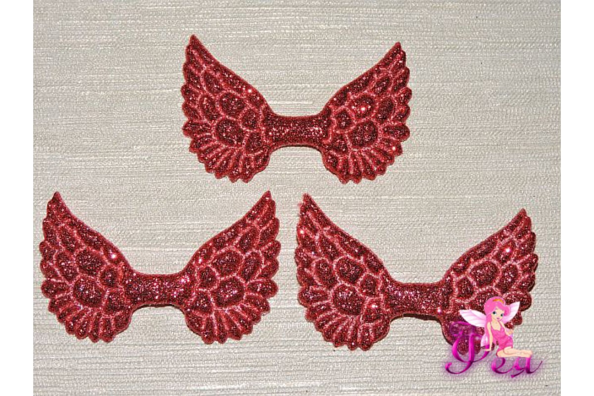 Патч с блестками 4,5 см*3 см "Крылья", красный - 1шт.