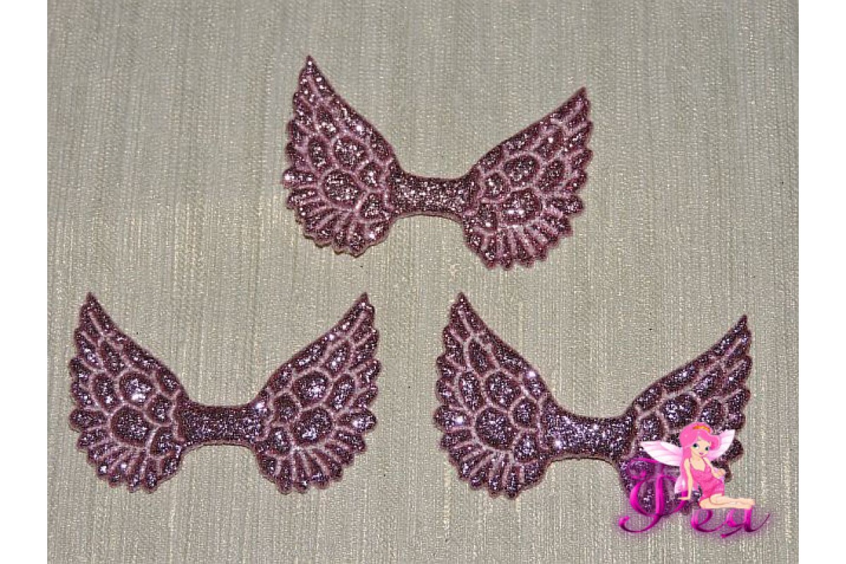 Патч с блестками 4,5 см*3 см "Крылья", розовый - 1шт.