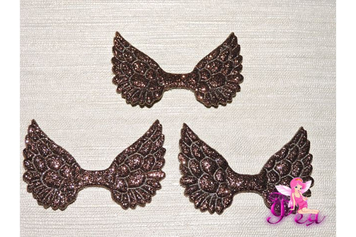 Патч с блестками 4,5 см*3 см "Крылья", шоколадный - 1 шт.