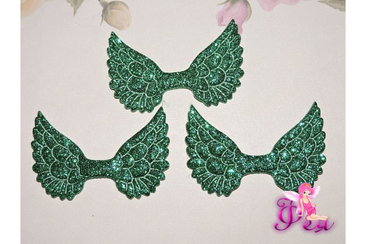 Патч с блестками 4,5 см*3 см "Крылья", зеленый - 1шт.