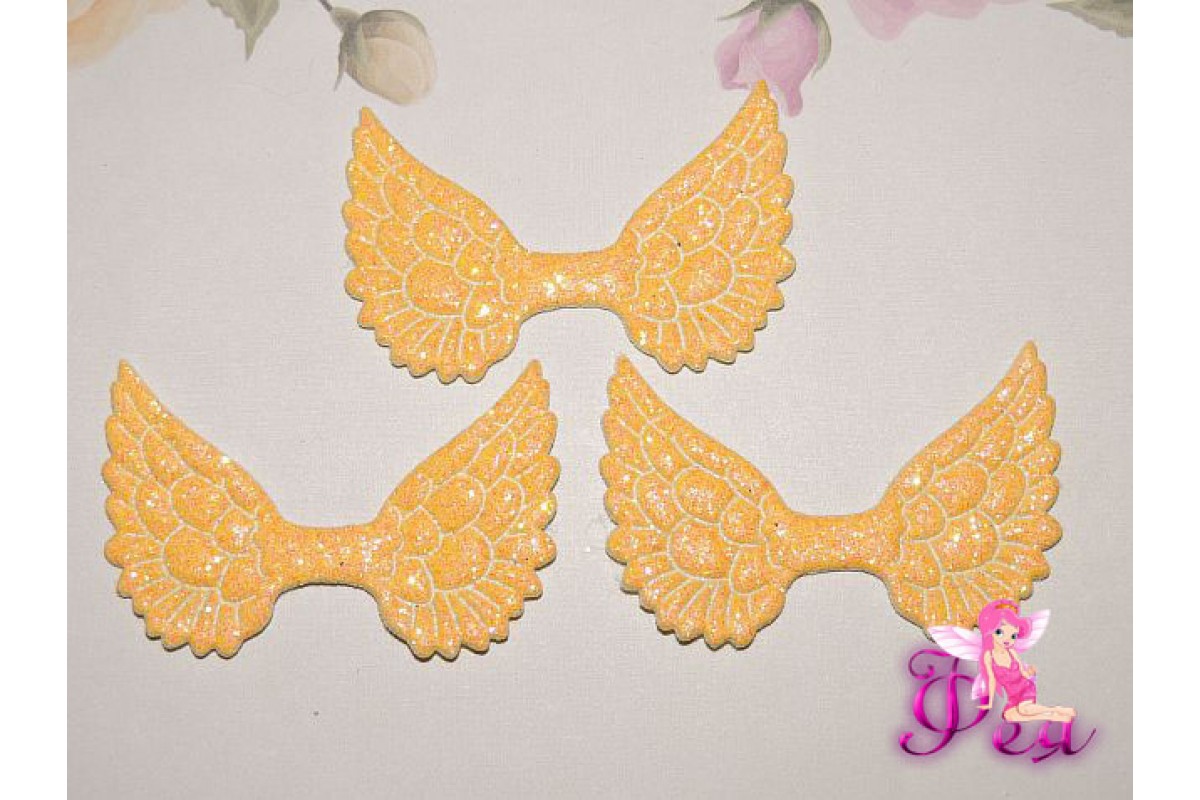 Патч с блестками 4,5 см*3 см "Крылья", желтый - 1шт.