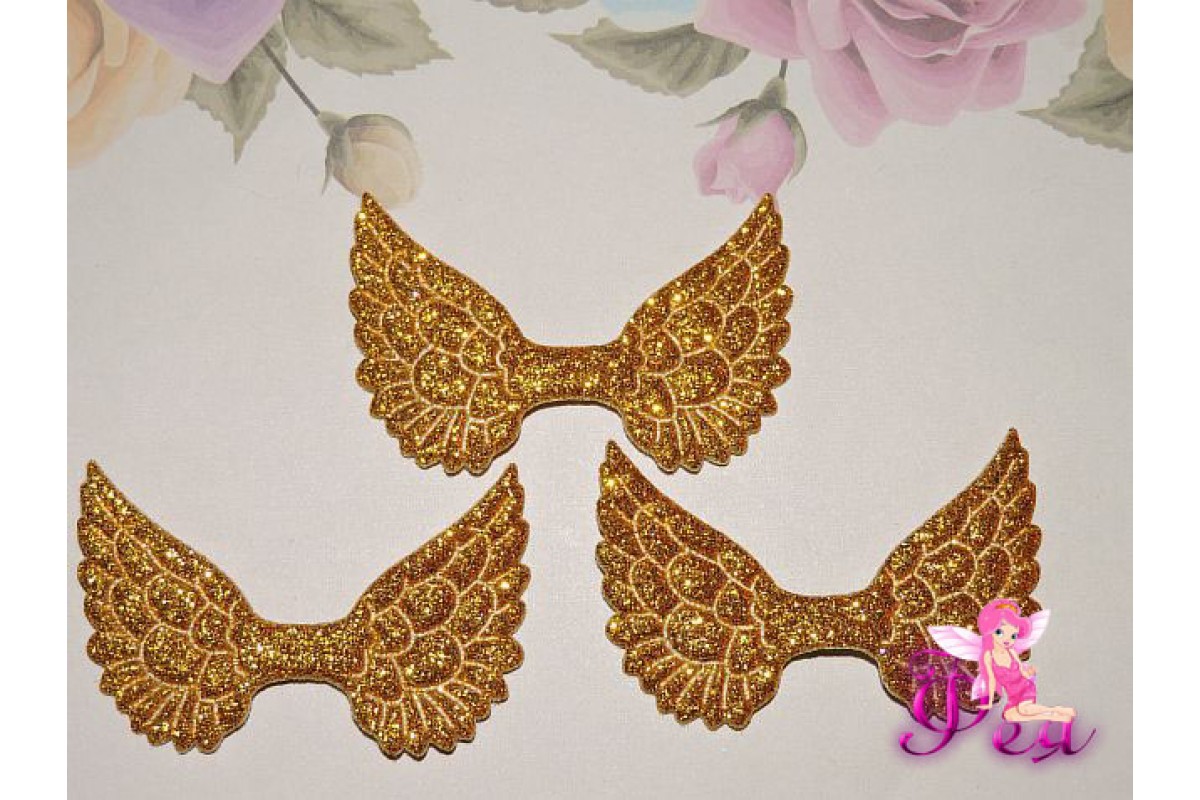 Патч с блестками 4,5 см*3 см "Крылья", золото - 1шт.