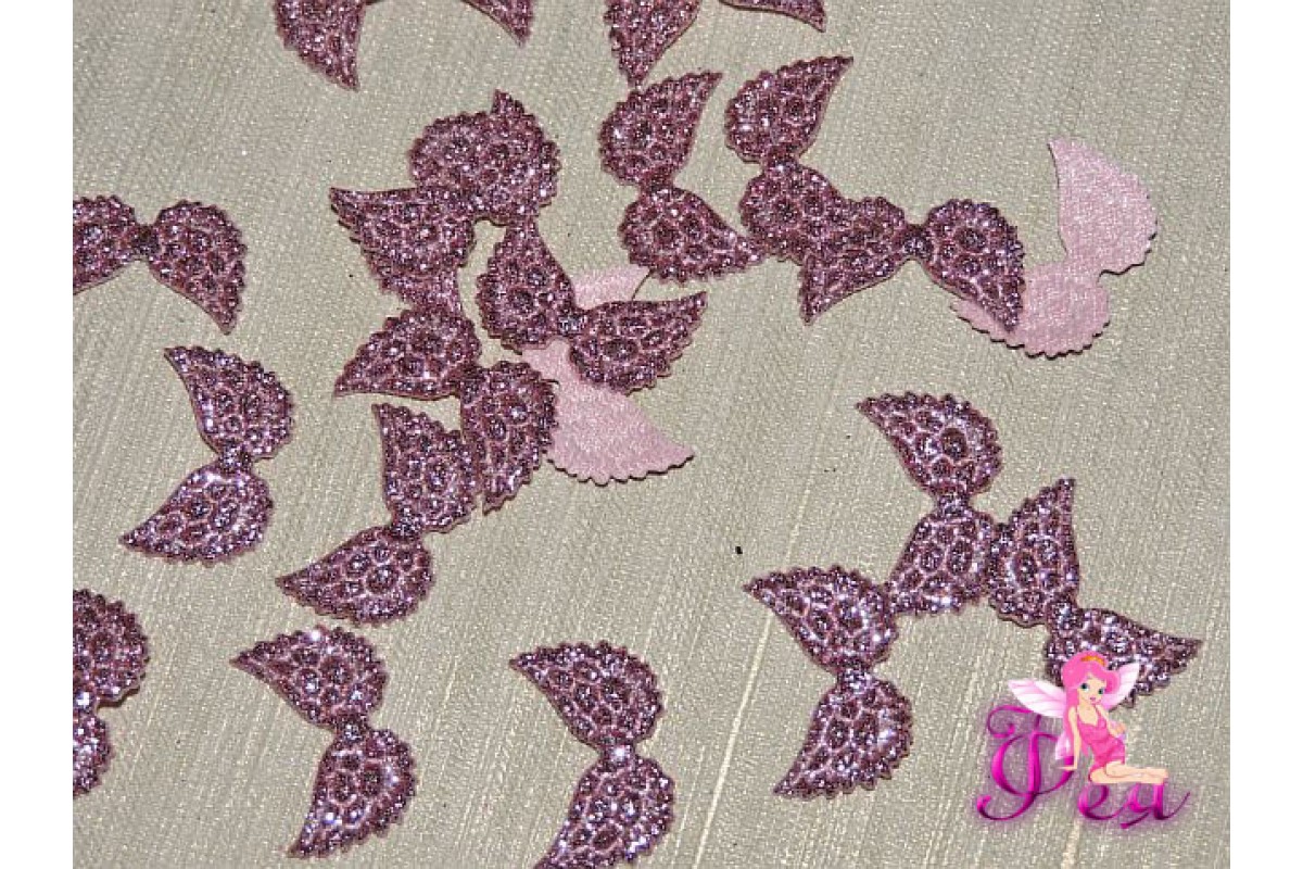 Патч с блестками2 *1 см "Крылья маленькие",розовый (1 шт)