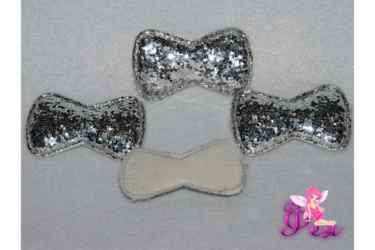 Патч с пайетками "Бантик 3D" 5*3 см, серебро