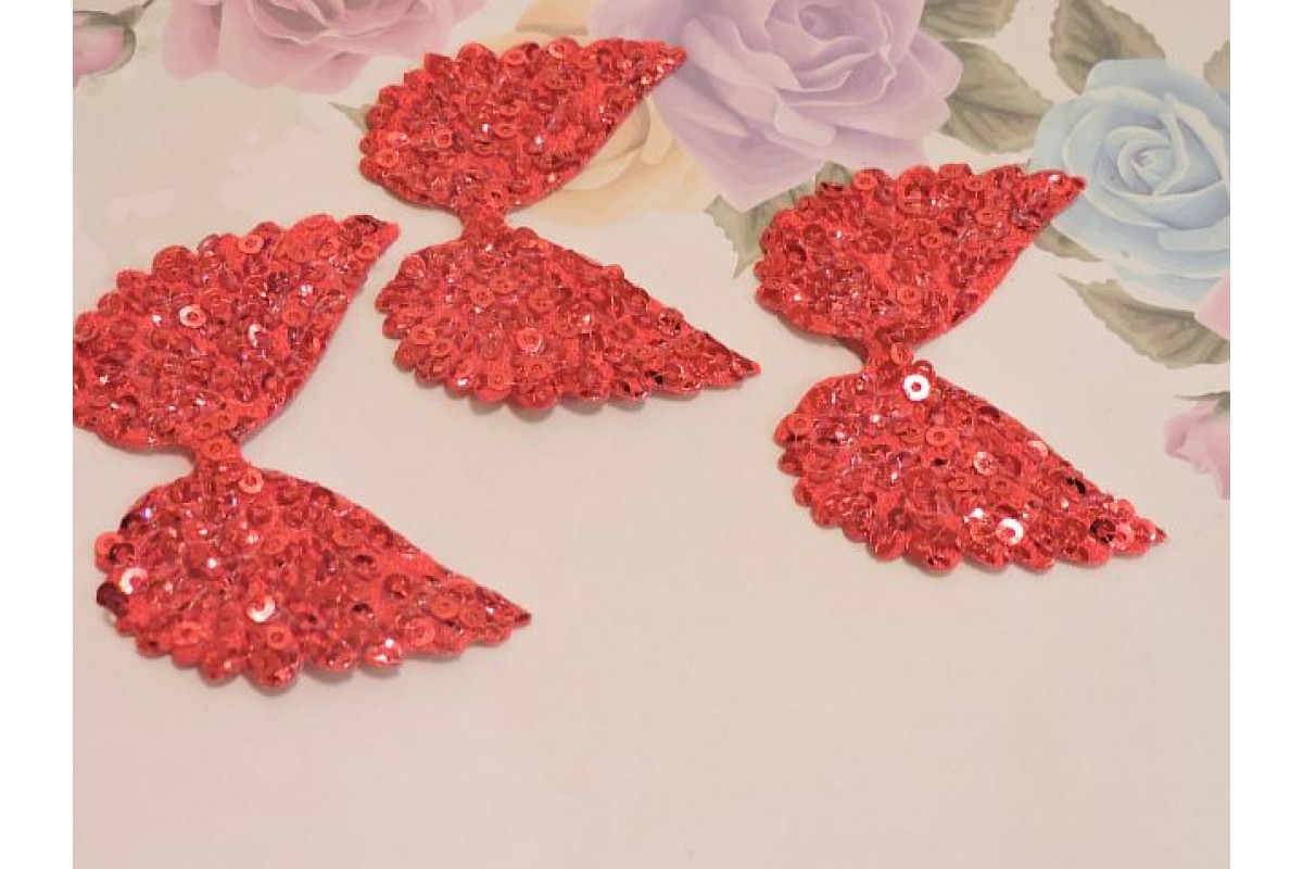 Патч с пайетками "Крылья" 5,7*4,3 см, цв. красный - 1 шт