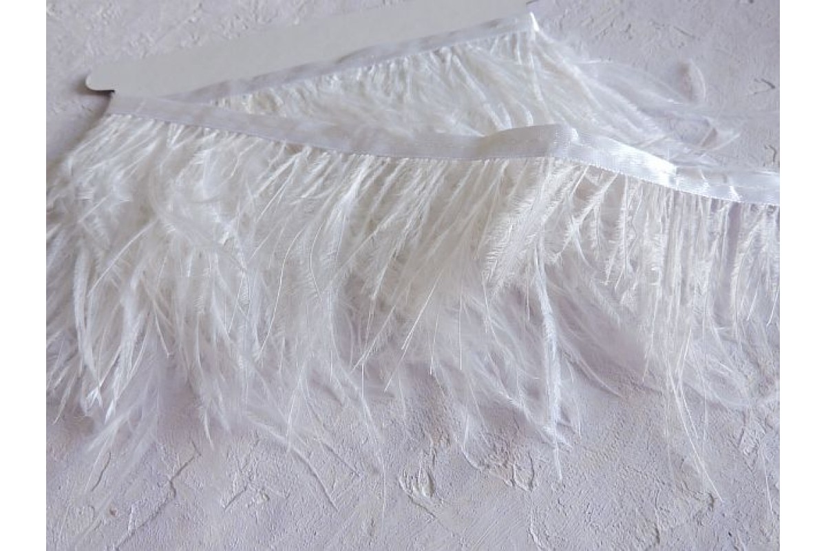 Перья страуса на ленте, цв. белый - отрез 25 см