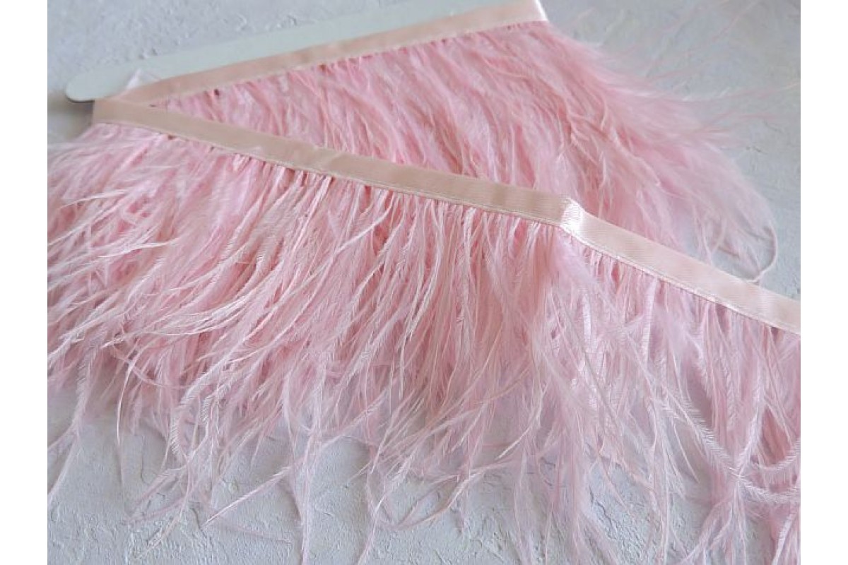 Перья страуса на ленте, цв. розовый - отрез 25 см