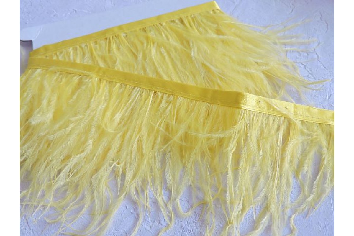Перья страуса на ленте, цв. желтый - отрез 25 см