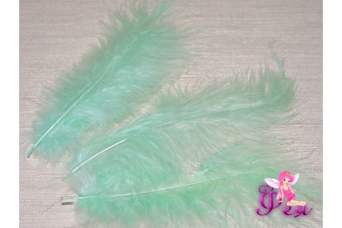 Перо декоративное 13,5см, цв. аквамарин - 1шт