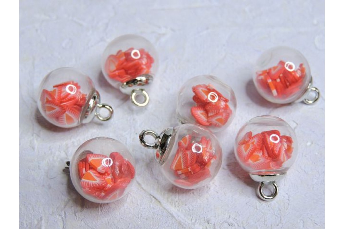 9876, Подвеска шарик с наполнителем "Клубника" - 1 шт., , 0.89BYN, 308-179, Китай, Подвески