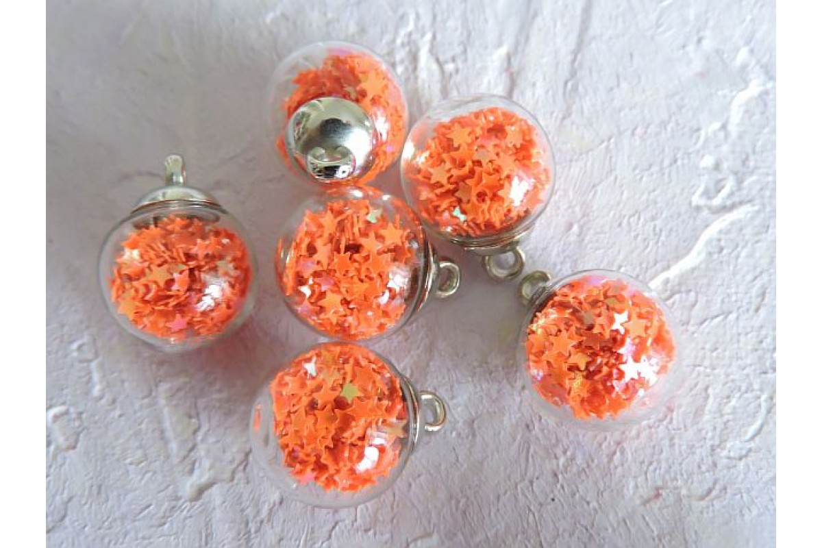 Подвеска шарик с наполнителем "Звездочка", цв. ярко-оранжевый - 1 шт.
