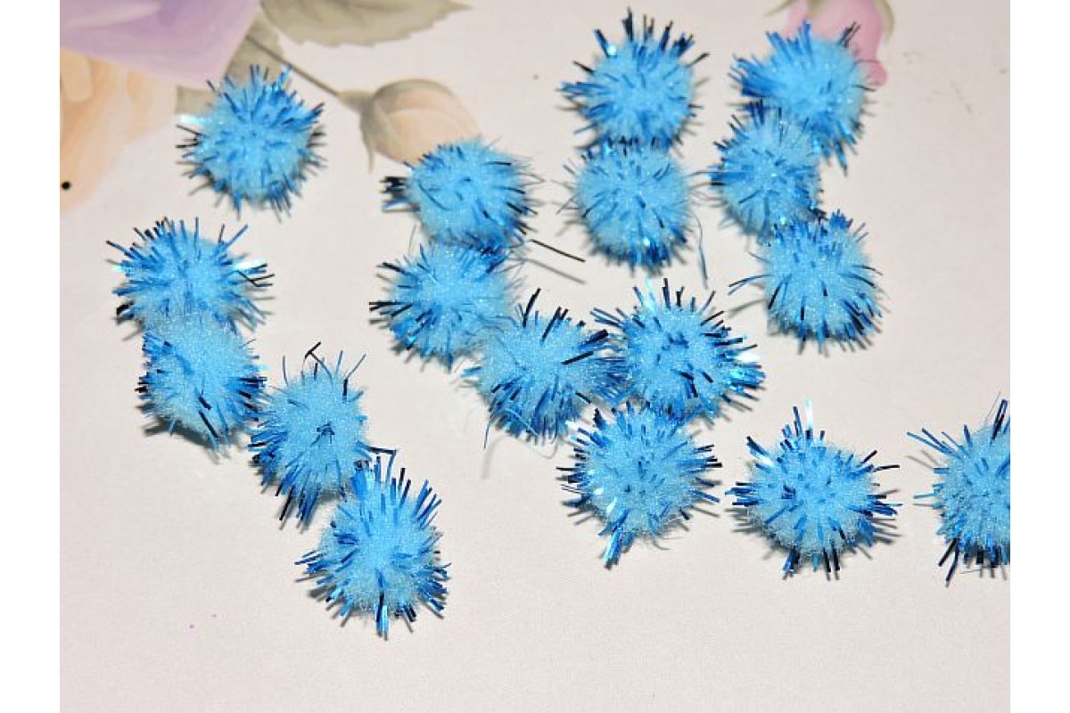 Помпоны с люрексом 10 мм, цв. голубой - 10шт