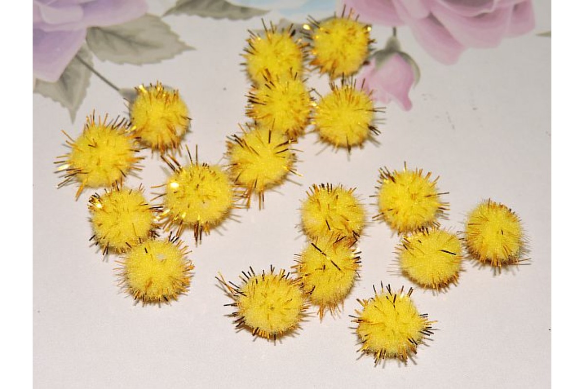 Помпоны с люрексом 10 мм, цв. желтый - 10шт