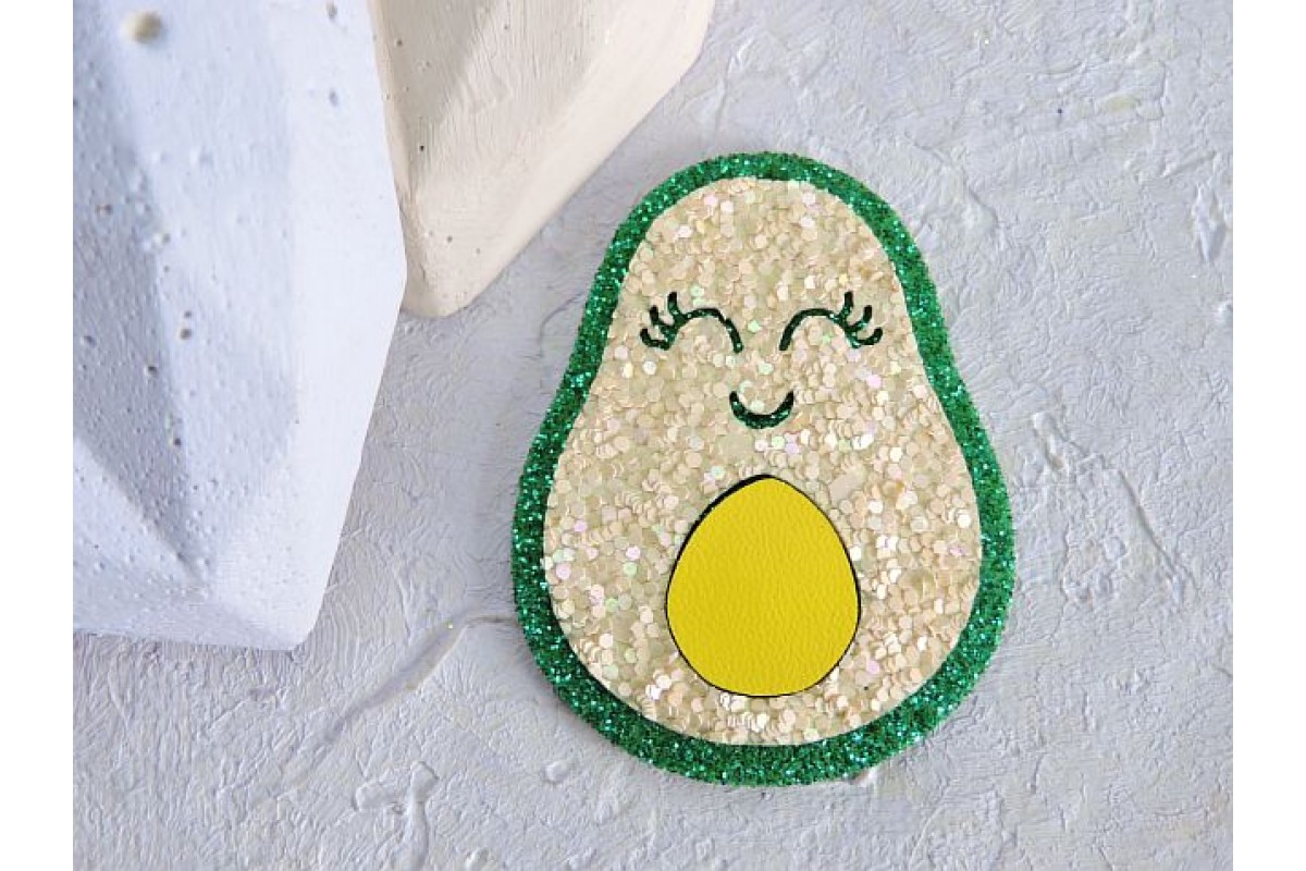 Патч сборный "Авокадо", 50*39 мм, цв. зеленый - 1 шт. Материал: основа - глиттерный фоамиран, верх - кожзам. Состоит из нескольких частей.