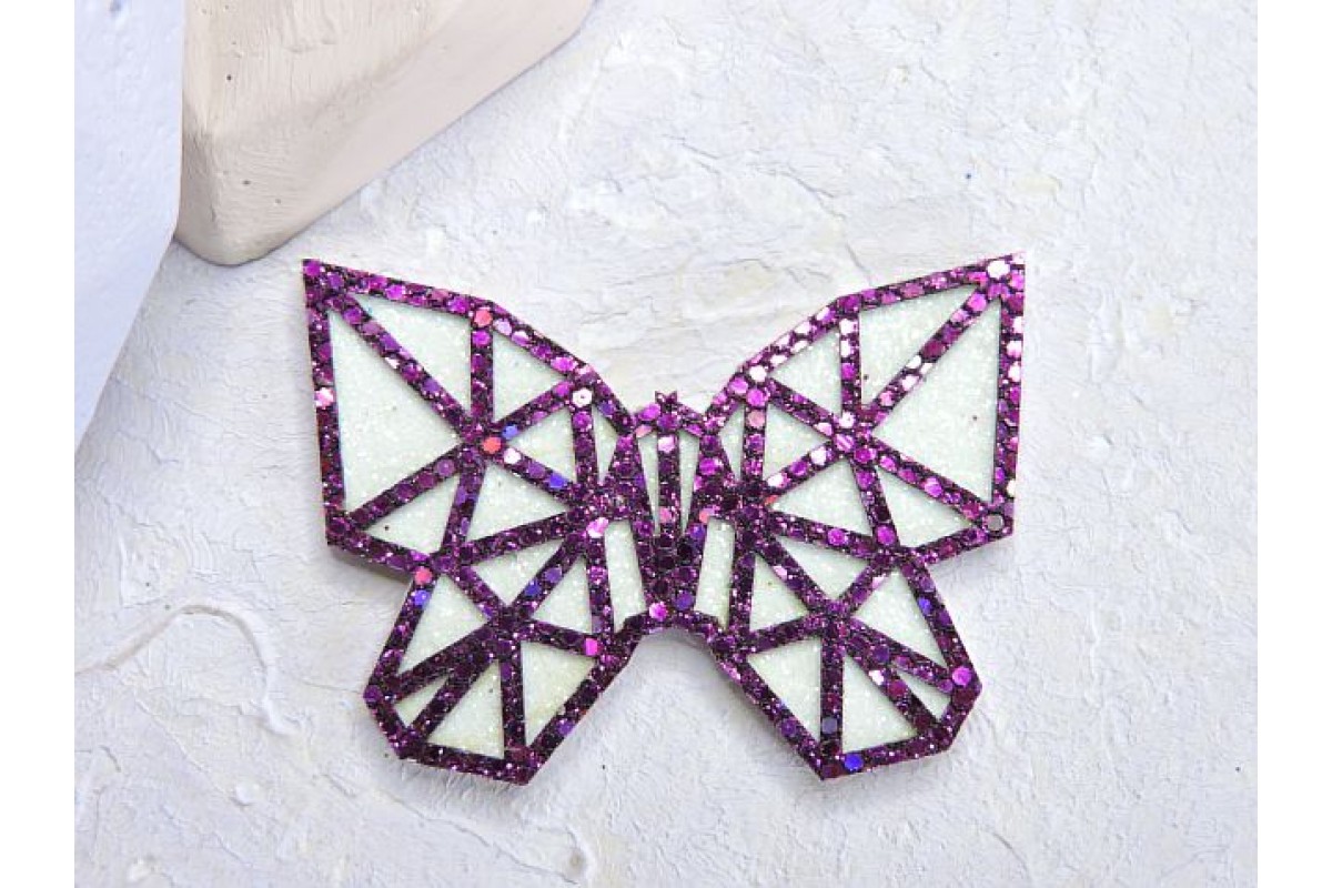 Патч сборный "Бабочка геометрия", 50*35 мм, цв. фиолетово-белый - 1 шт. Материал: основа - глиттерный фоамиран, верх - кожзам. Состоит из нескольких частей.