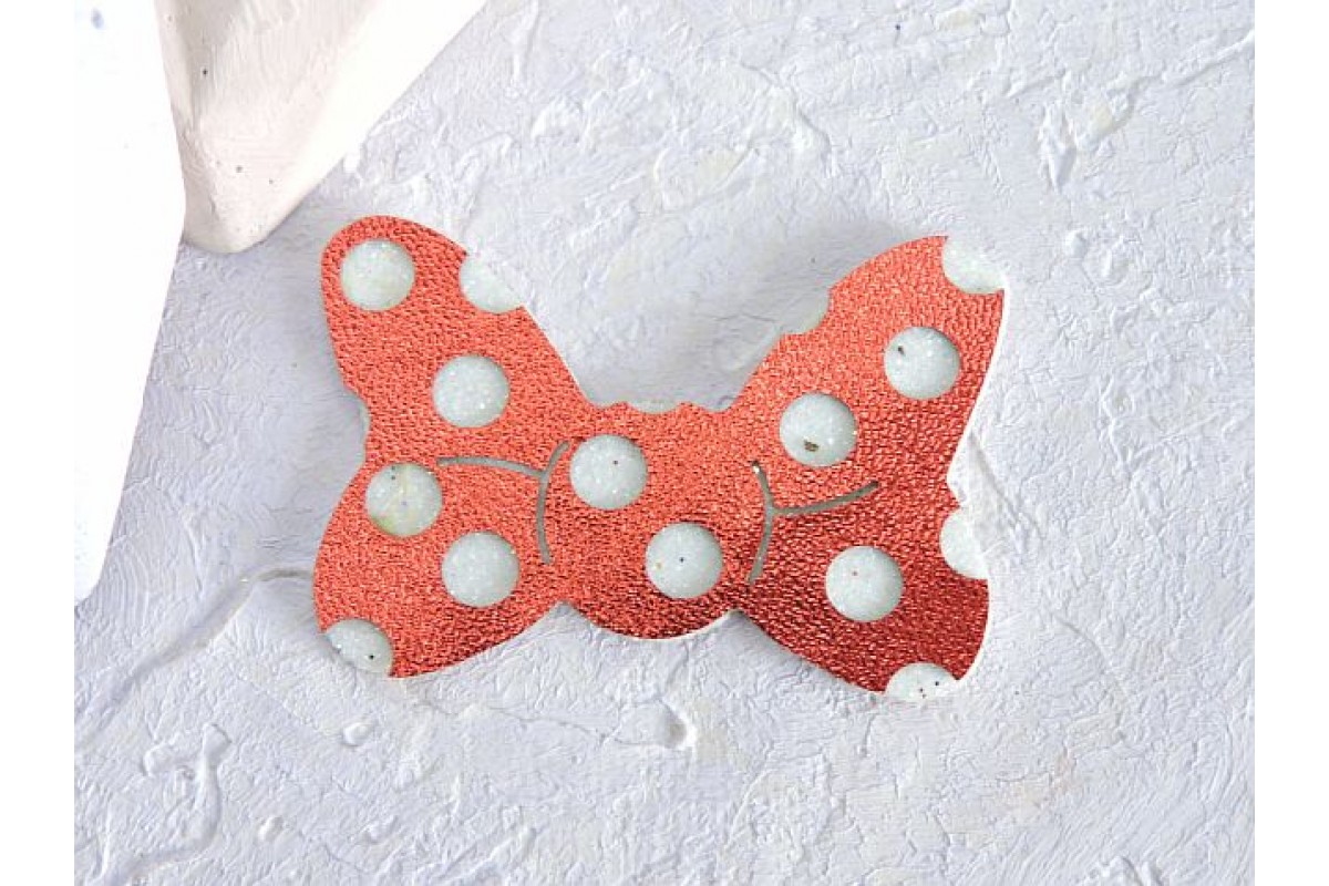 Патч сборный "Бантик", 50*35 мм, цв. бело-красный - 1 шт. Материал: основа - глиттерный фоамиран, верх - кожзам. Состоит из нескольких частей.