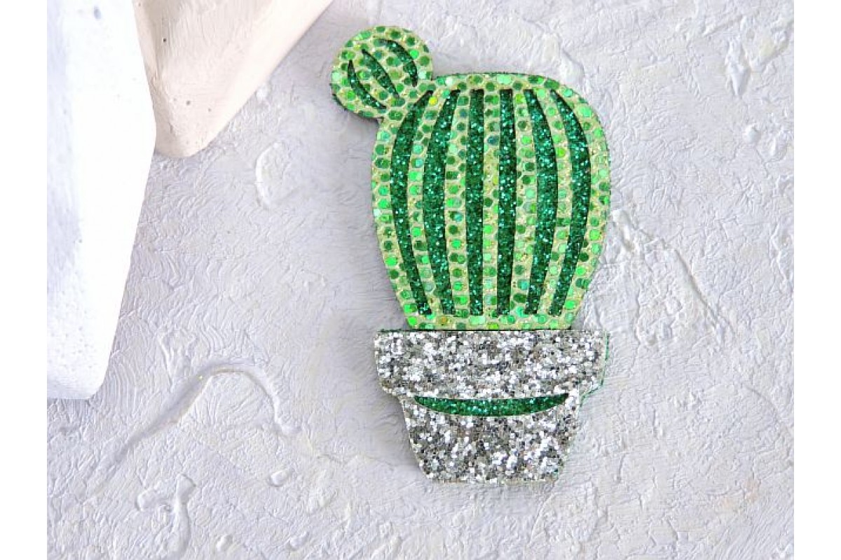 Патч сборный "Кактус", 50*35 мм, цв. зеленый - 1 шт. Материал: основа - глиттерный фоамиран, верх - кожзам. Состоит из нескольких частей.