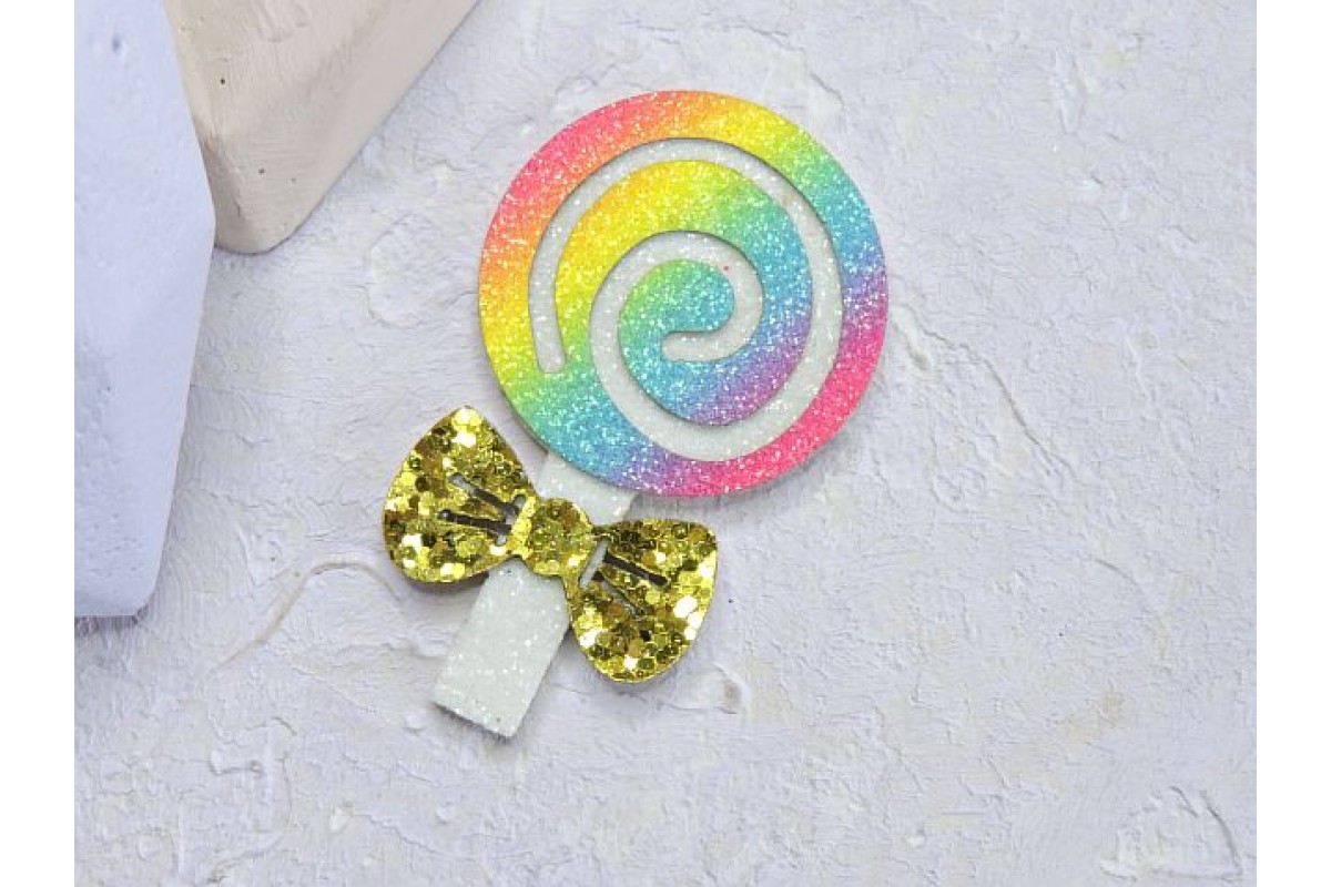 Патч сборный "Конфетка", 50*30 мм, цв. радужный - 1 шт. Материал: основа - глиттерный фоамиран, верх - кожзам. Состоит из нескольких частей.