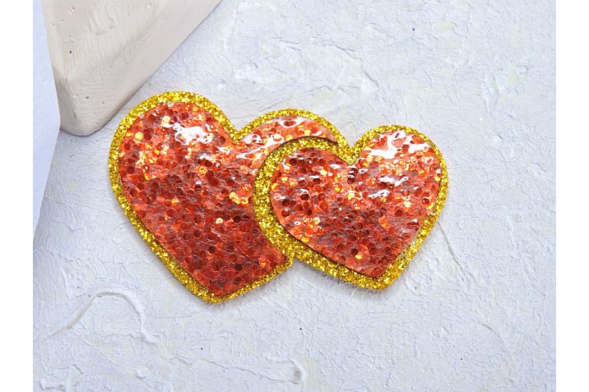 Патч сборный "Сердечки", 50*30 мм, цв.золотисто-красный - 1 шт. Материал: основа - глиттерный фоамиран, верх - кожзам. Состоит из нескольких частей.