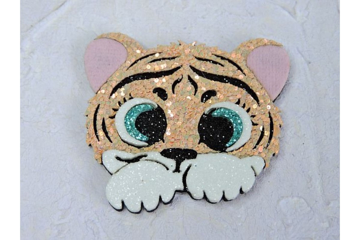Патч сборный "Тигр" 5*4,4 см, цв. светло-оранжевый - 1шт. Материал: основа - глиттерный фоамиран, верх - кожзам. Состоит из нескольких частей. Детали патчи не склеены между собой. Склеивать самостоятельно!