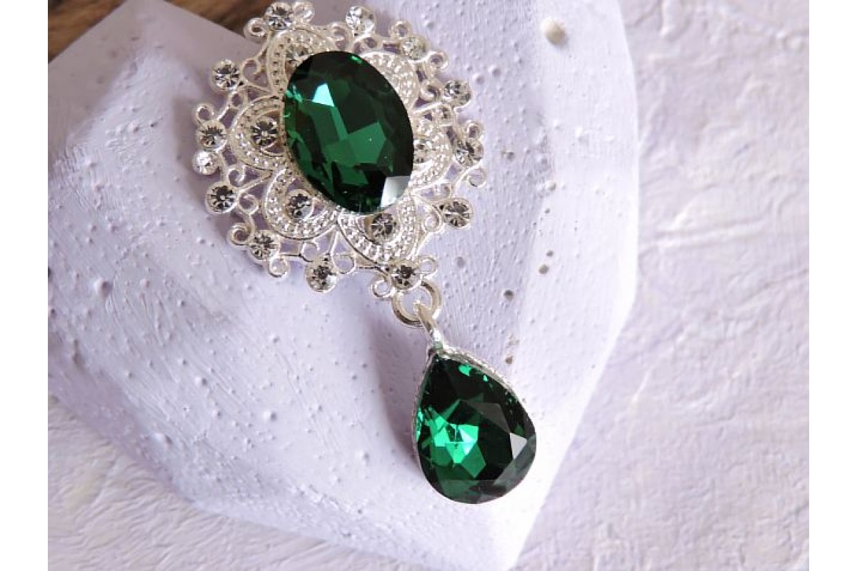 Серединка ювелирная с подвеской 4,5 см*2,5 см, цв. серебро/изумрудный - 1 шт