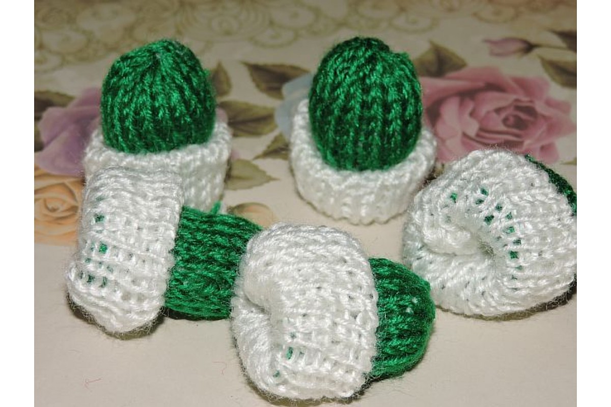 Шапочка вязаная двухцветная 33*40мм, цв. бело-зеленый - 1 шт., 304-304, Китай, Другие декорики