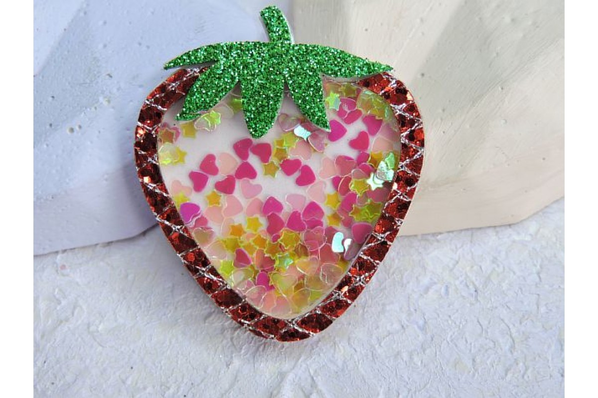 Патч-шейкер "Клубника" 50*40 мм - 1 шт. Продается уже в собранном виде! Материал: основа - фоамиран, верх- кожзам, глиттерный фоамиран.