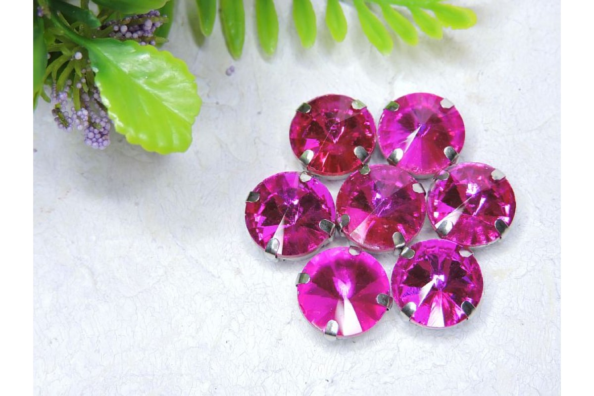 Страза пришивная 12 мм "Круг", цв. фукси - 1 шт.
