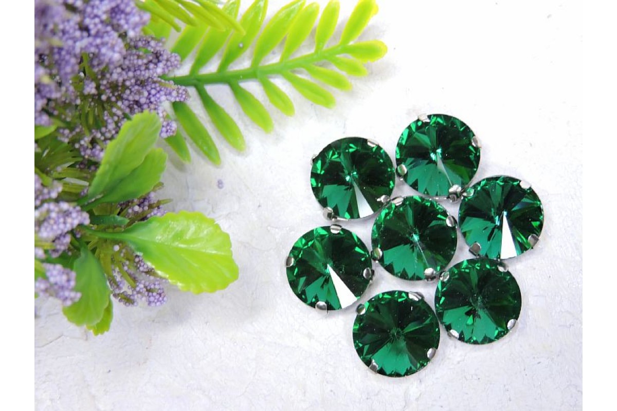 11195, Страза пришивная 12 мм "Круг", цв. изумрудный - 1 шт., , 0.38BYN, 251-232, Россия, Стразы, ювелирные серединки, кабошоны. Основа металл